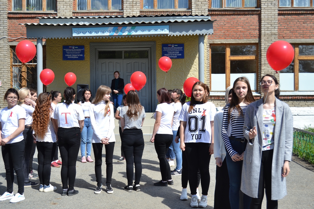 21 мая в Сибайском педагогическом колледже в рамках Всероссийской акции "СТОП ВИЧ\СПИД" состоялся флешмоб, приуроченный Всемирному дню здоровья. Акция была направлена на привлечение внимания студентов колледжа к проблеме распространения ВИЧ.